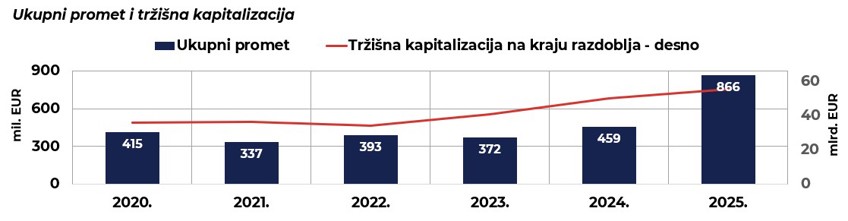 Tržišna kapitalizacija smanjila se za 3,1 % u odnosu na prethodni mjesec