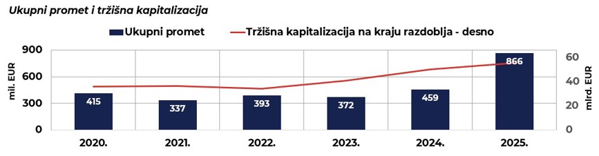 Tržišna kapitalizacija smanjila se za 1,7 % u odnosu na prethodni mjesec
