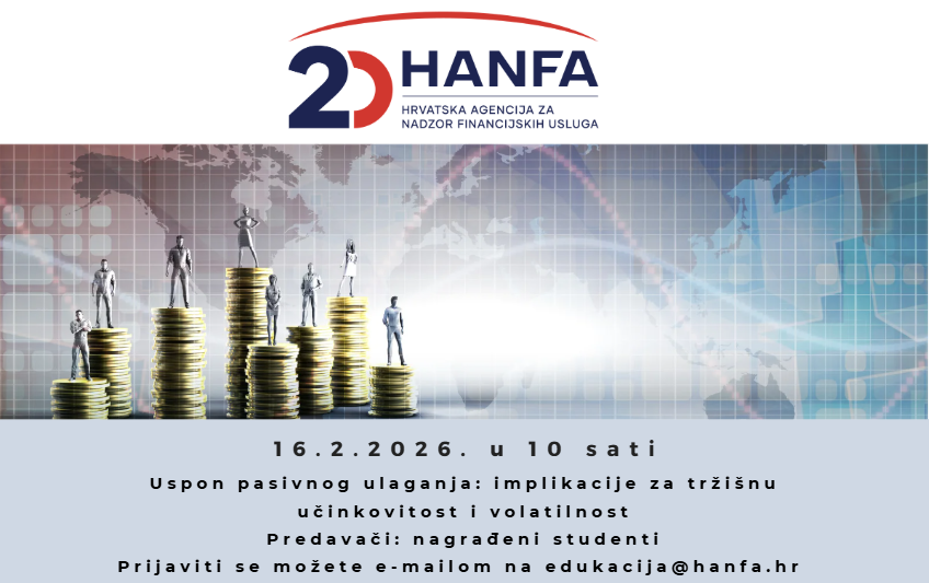 Ovdje ćete pronaći sadržaj koji će, nadamo se, biti dobar obrazovni materijal ne samo o financijskim uslugama nego i mogućim rizicima koji ih njih proizlaze. Dodane su i zanimljivosti, pregled trendova financijske industrije i važna događanja posvećena razvoju financijske pismenosti građana u Hrvatskoj.