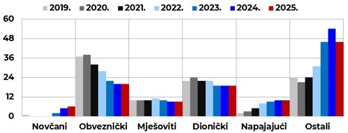 Na kraju prosinca 2025. poslovalo je ukupno 110 UCITS fondova. Njihova ukupna neto imovina iznosila je 4,0 mlrd. EUR te je bila za 27,2 mil. EUR, ili 0,7 %, veća u odnosu na prethodni mjesec, dok je u odnosu na kraj prethodne godine to rast od 814,4 mil. EUR, ili 25,2 %. Ukupne mjesečne neto uplate u sve UCITS fondove u prosincu su bile pozitivne i iznosile su 30,8 mil. EUR. Pozitivne neto uplate imali su novčani fondovi (15,1 mil. EUR), dionički fondovi (11,7 mil. EUR), fondovi iz kategorije „ostali“ (11,0 mil. EUR) i mješoviti fondovi (3,1 mil. EUR), dok su negativne neto uplate imali napajajući fondovi (-1,4 mil. EUR) i obveznički fondovi (-8,6 mil. EUR).