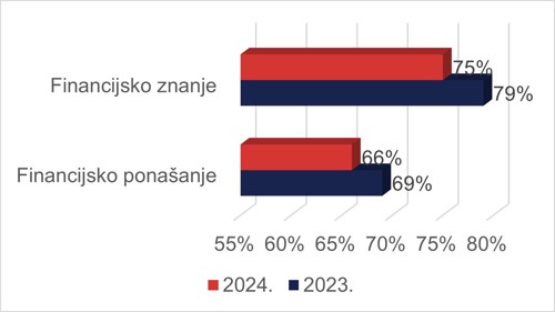Graf 1: Usporedba financijskog znanja i financijskog ponašanja učenika osnovnih škola 2023. i 2024. godine*