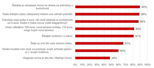 Najbolje rezultate postižu u rješavanju osnovnih matematičkih problema i izražavanju stavova o financijama, dok su manje upoznati s pojmom budžeta te razlikom između štednje i ulaganja.